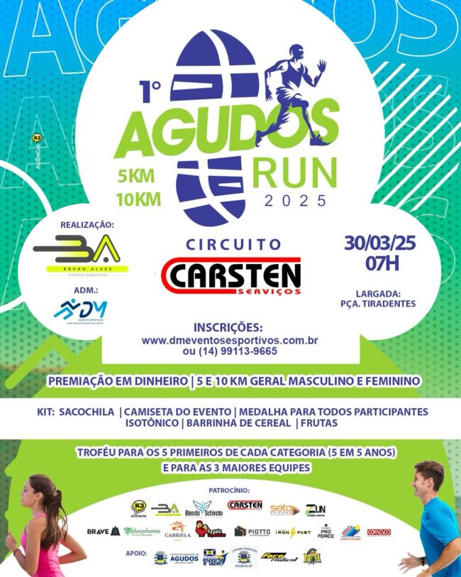 1º AGUDOS RUN 2025 CorridaPor Diego Morelli31/03/2025Resultados: CLASSIFICAÇÃO FAIXA ETÁRIA – AGUDOS RUN CLASSIFICAÇÃO GERAL – AGUDOS RUN
