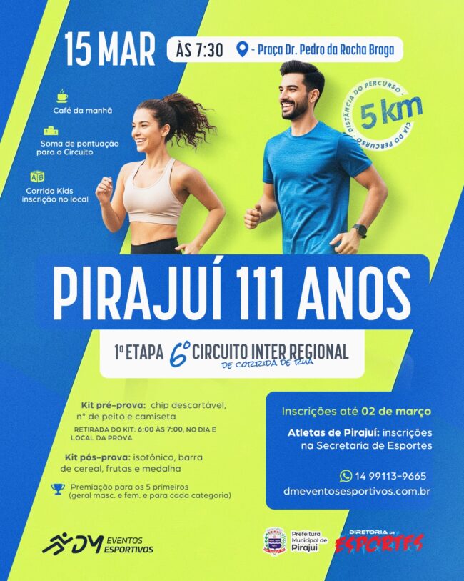 Resultados: CLASSIFICAÇÃO FAIXA ETÁRIA – Pirajuí 2026 CLASSIFICAÇÃO GERAL – pirajuí 2026 Link fotos: https://www.focoradical.com.br/prova/20260315-6o-circuito-inter-regional-pirajui-4677 Link resultados: https://picrono.com.br/home/#resultados
