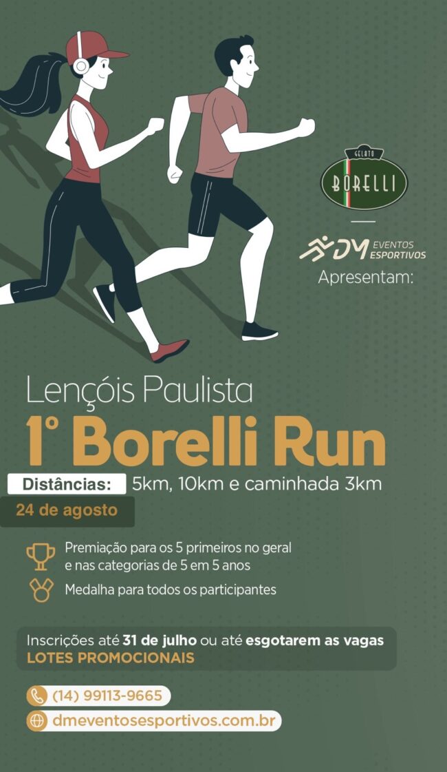 Resultados: Resultado-CLASSIFICAÇÃO FAIXA ETARIA – BORELLI Resultado-CLASSIFICAÇÃO GERAL – BORELLI Link resultados: https://picrono.com.br/racetag/#/1-borelli-run Link fotos: https://www.focoradical.com.br/prova/20250824-1o-borelli-run-lencois-paulista-4677