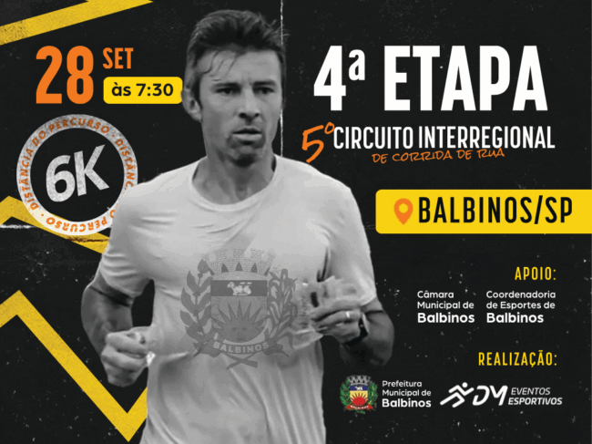 Regulamento Circuito Inter Regional 2025 Resultados: Resultado-CLASSIFICAÇÃO FAIXA ETÁRIA – Balbinos Resultado-CLASSIFICAÇÃO GERAL – Balbinos Link resultados: https://picrono.com.br/racetag/#/5-circuito-inter-regional-de-corrida-de-rua–4-etapa Link fotos: https://www.focoradical.com.br/prova/20250928-5o-circuito-inter-regional-de-corrida-de-rua-4a-etapa-balbinos-balbinos-4677
